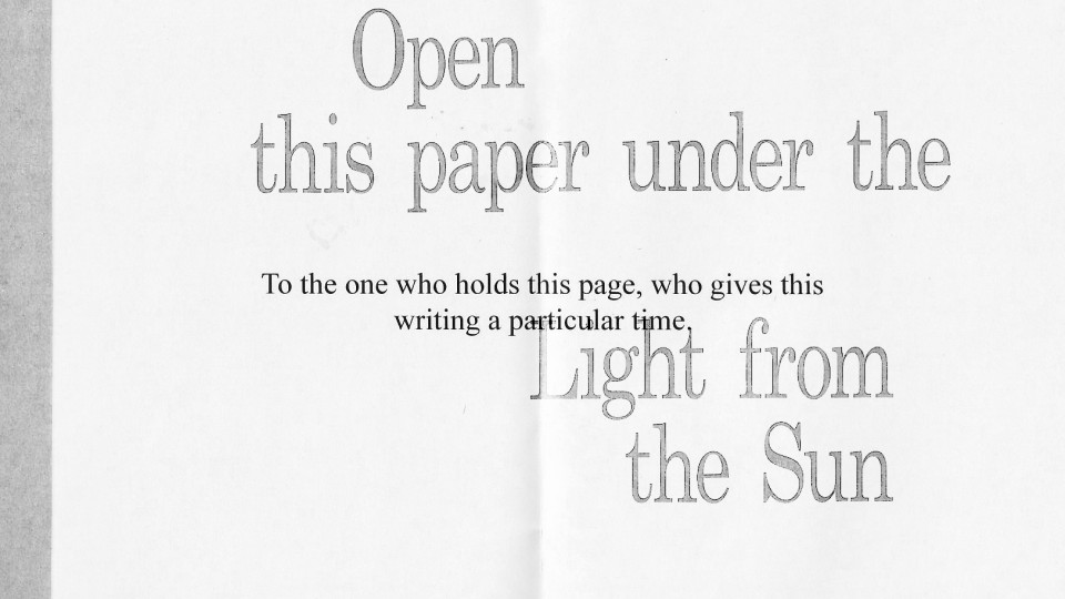 OPEN THIS PAPER UNDER THE LIGHT FROM THE SUN