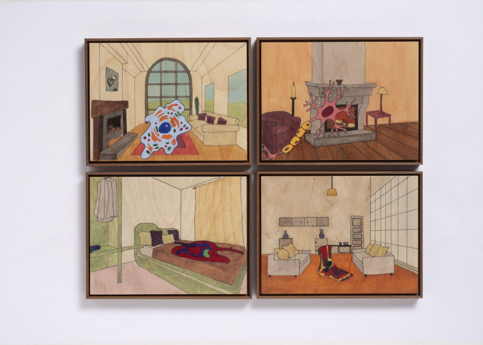Tableaux initialement réalisés à l’aquarelle et acrylique – imprimés sur bois.