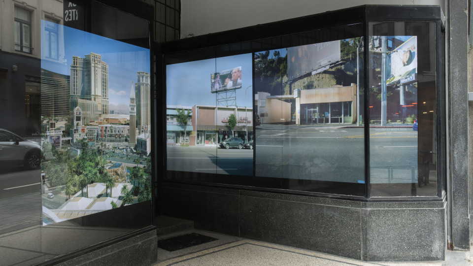 Spécialement conçue pour la vitrine d’Entre deux portes, l’installation photographique proposée par Hannah Darabi et Benoît Grimbert met en relation les projets qu’ils ont chacun menés à Los Angeles et ses alentours au cours des dix dernières années : Soleil of Persian Square (2021), consacré à la diaspora iranienne de Californie du Sud, et Horse Latitudes (2023), dédié à Jim Morrison.